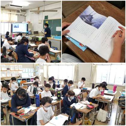 2組では、国語科「海のいのち」の範読を聞いています。