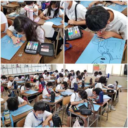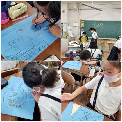 安全に気をつけて彫刻刀で少しずつ彫り進めています。