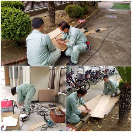今日から18日までの予定で、運動場に面した門や給食物資の搬入門等の塗装をしてもらいます。