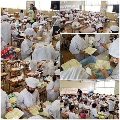 給食を楽しみにしている子ども達が笑顔で給食室にやってきます。