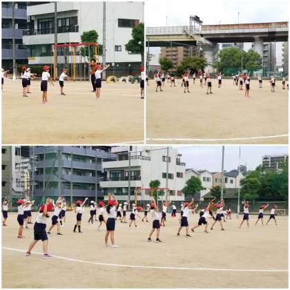 教育実習生から教えてもらっている「ラジオ体操第一」
