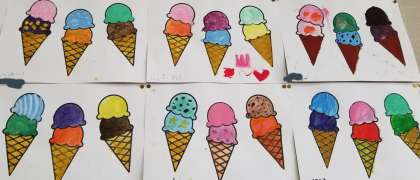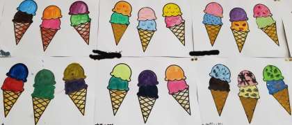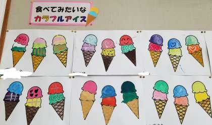 2年生の教室壁面に、おいしそうな「カラフルアイス」が!