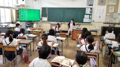 2拍子・3拍子を身体表現で感じ取っています。