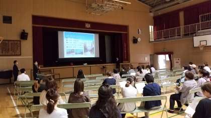 本日、16時より体育館で修学旅行保護者説明会を行っています。