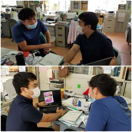 担任とC−NETが、授業の打ち合わせをしています。
