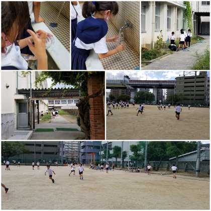 運動場では、思い思いの遊びをして楽しんでいます。