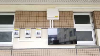 運用が始まったら、太陽光エネルギーを確認するための液晶パネル(子ども達は「テレビ」と言ってます)が、体育館の壁面に設置されました。