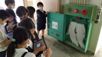 3年生が、校内の防災対策について調べています。