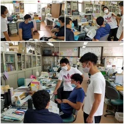英語の授業について、C−NETと担任が打ち合わせをしています。