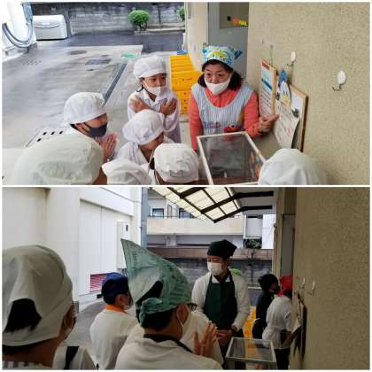 給食中に1年生の教室に行くと・・・