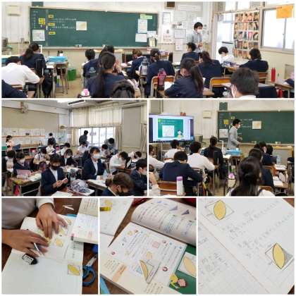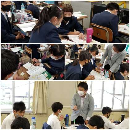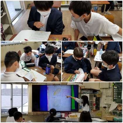 今まで学習してきたことを活用して、複雑な形の面積の求め方を考えています。