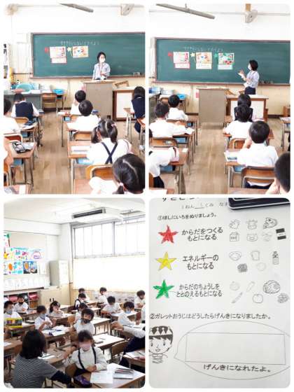食べ物を「あか・き・みどり」に仲間分けして、それぞれの働きについて学習しました。