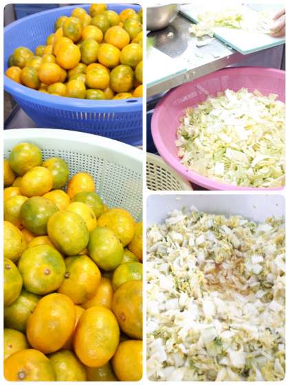 はくさいのピクルスは、ワインビネガーを使った調味液に焼きもの機という機械で蒸したはくさいをつけて味を含ませています。
