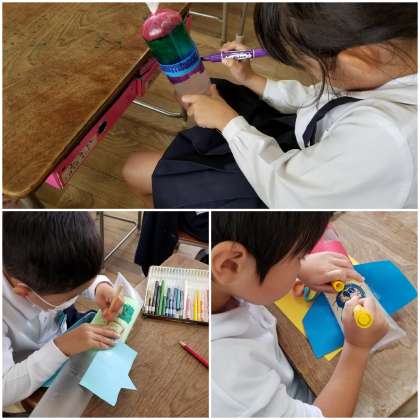 画用紙やマジックなどを使って、オリジナル作品が仕上がっています。