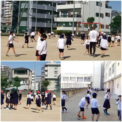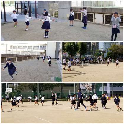 運動場では、ぽかぽか陽気に誘われて、多くの子どもが遊んでいます。