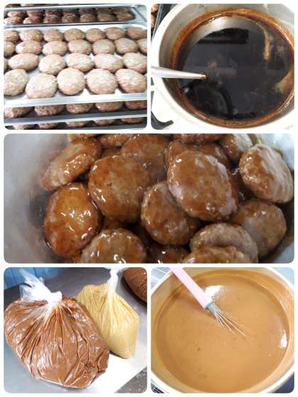 和風ハンバーグは、焼きもの機という機械で焼いたハンバーグに砂糖・みりん・こいくちしょうゆを使いでんぷんでとろみをつけたタレをかけています。
