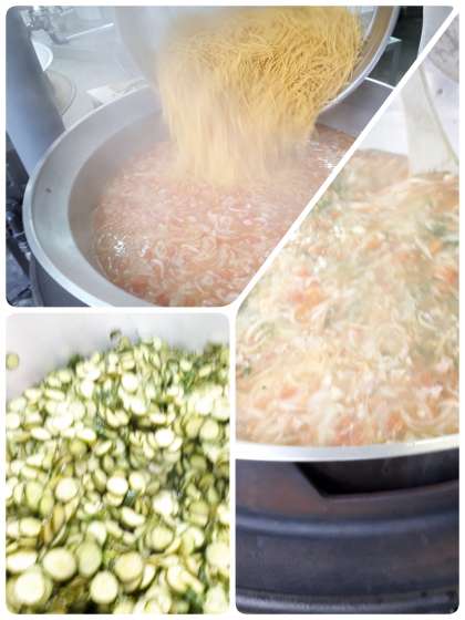 今日の献立は、牛肉のカレー風味焼き・ほたて貝とトマトのスープスパゲッティ・きゅうりのサラダ・黒糖パン・牛乳でした。