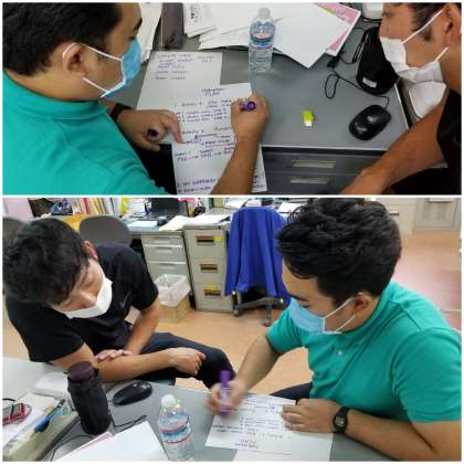 C−NETと担任が、授業の振り返りと、次回に向けての打ち合わせをしています。