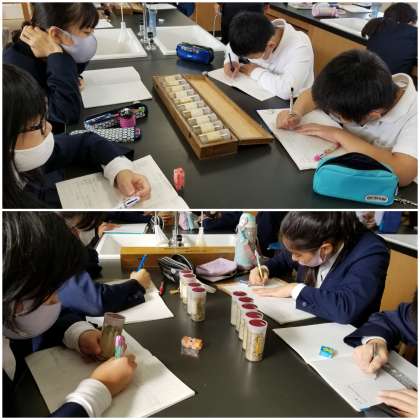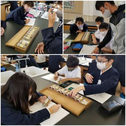 今から50年ほど前の、瓜破北小学校のボーリング資料を見て地質について学習しています。