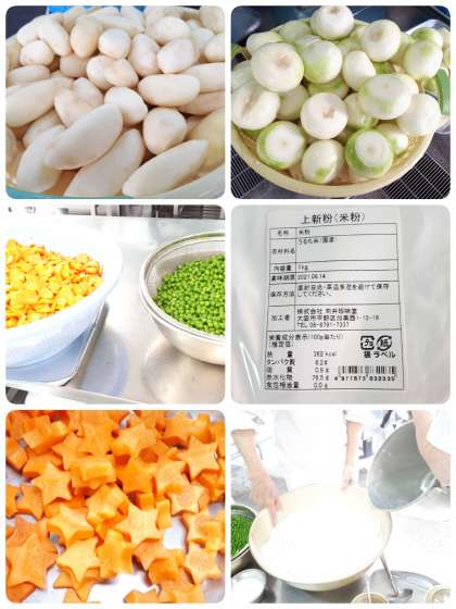 ハヤシライスは、小麦アレルギーの児童も食べることができるように上新粉を使っています。