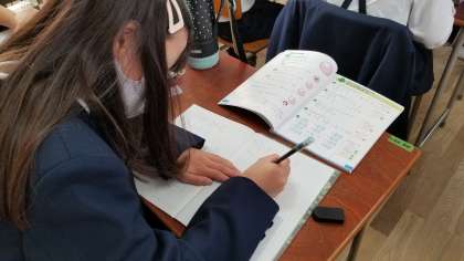 いろいろな場面を想定して、分数で表す問題にも取り組んでいます。