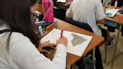 先日、修学旅行で訪れた「スペイン村」のおよその面積を求めています。