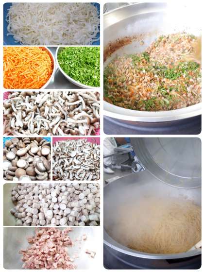 ウインナーときのこのしょうゆ風味スパゲッティは、ベーコンをからいりし、オリーブ油でにんにくを香り良くいため、ウインナー・しいたけ・きのこなどを使用ししょうゆベースの和風の味つけにしています。