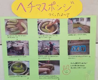 5年生が理科の学習で観察していた『へちま』をヘチマスポンジに変身させました。