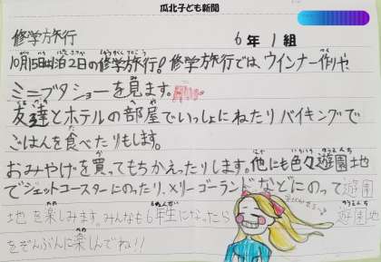 楽しかった修学旅行の思い出が、新聞の記事になっています。