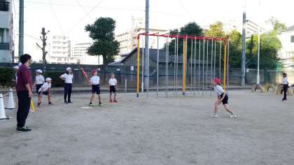 ソフトボールの試合に向けて【打って走って投げて】に慣れる練習をしています。