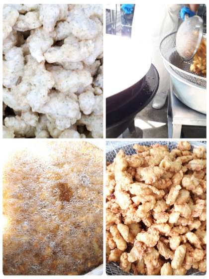 白身魚のフリッターは、青のりが入った衣がサクッとし風味も良く、中の白身魚はやわらかく児童に大人気でした。