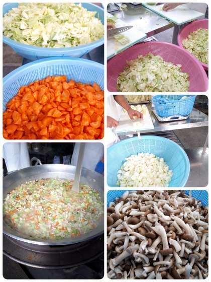 洋風煮は、鶏肉・てぼ豆・キャベツ・たまねぎ・にんじん・しめじを使用しています。