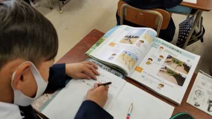 方位磁針を使って、太陽の出る方角を調べたり、一日の中での影の長さの変化を調べたりします。