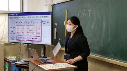 英語イノベーションの上田指導教諭に、英語科の評価について研修していただきました。