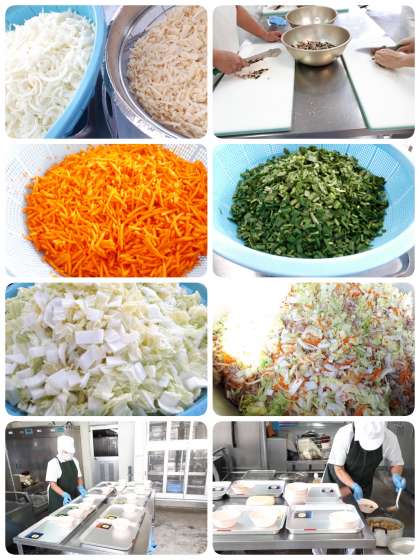 中華丼は、豚肉・うずら卵・しょうが・にんじん・はくさい・たまねぎ・にら・しいたけを使用しています。