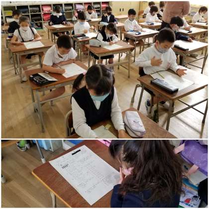 発表の仕方についてまとめたものをノートに貼り、定着を図れるよう取り組んでいます。