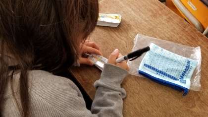 九九カードに名前を書いたら、早速練習です。