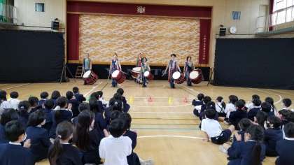 和太鼓集団「倭」の皆さんに来ていただき、迫力ある演奏を聴かせていただきました。