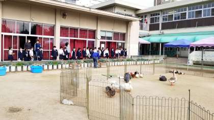 かわいい動物を見せてもらいに1年生が遊びに行きました。