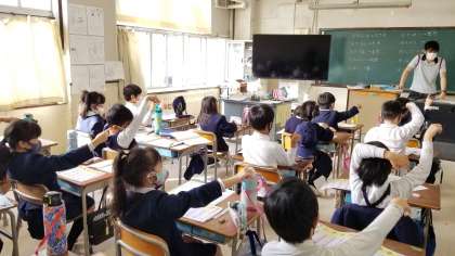 筆順だけでなく、読み方、使い方も全員で確認しています。