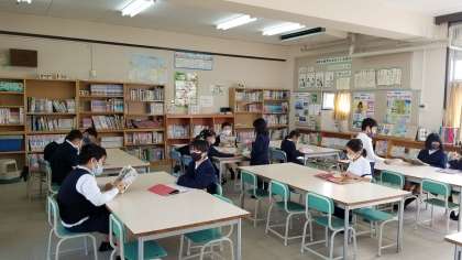 ぽかぽか陽気の図書室内で、子ども達は思い思いに読書を楽しんでいます。