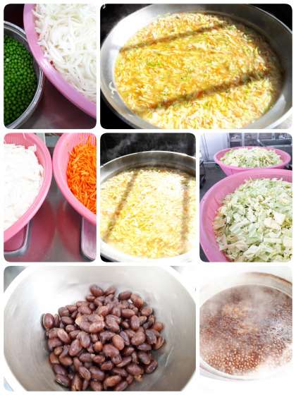 今日の献立は、豚肉のデミグラスソース・スープ・うずら豆のグラッセ・おさつパン・牛乳でした。