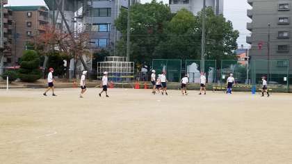 運動場では、6年生が「サッカー」に取り組んでいます。