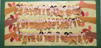 階段掲示板に、かわいらしい「みのむし」が登場です!