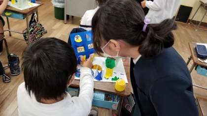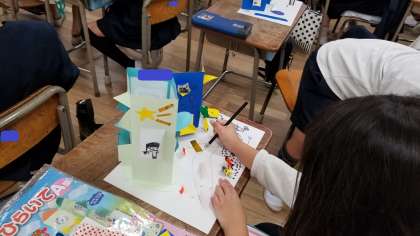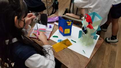 自分の作品をじっくり見て、納得のいく題名をつけようとしています。