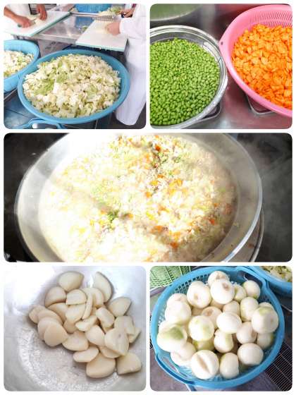 豚肉と野菜のスープ煮は、にんにく・豚肉・じゃがいも・たまねぎ・にんじん・キャベツ・むきえだまめを使用した彩りのよいスープ煮です。
