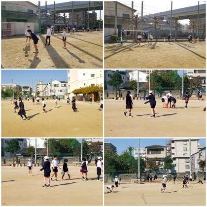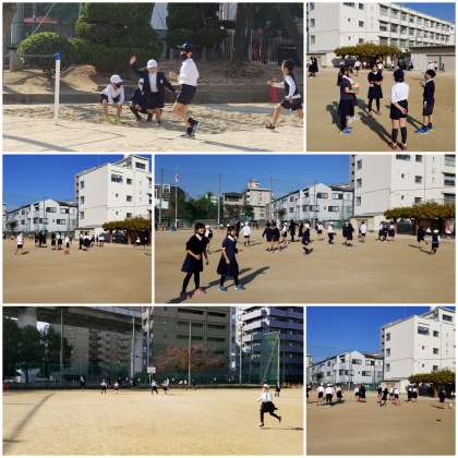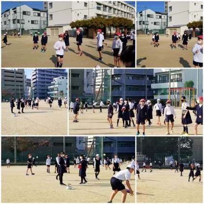 掃除が終わった子どもから、次々と運動場に出てきます。