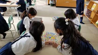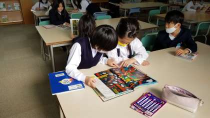 1冊の本を、友達と楽しそうにのぞきこんでいる姿も見られます。