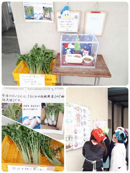 『なにわの伝統野菜』の田辺だいこんについての説明を聞き、「東住吉区ってすぐそこやん!」「だいこんに葉ついてるんや〜」「だいこんの葉、初めて見た〜」などいろいろな発見があったようです。