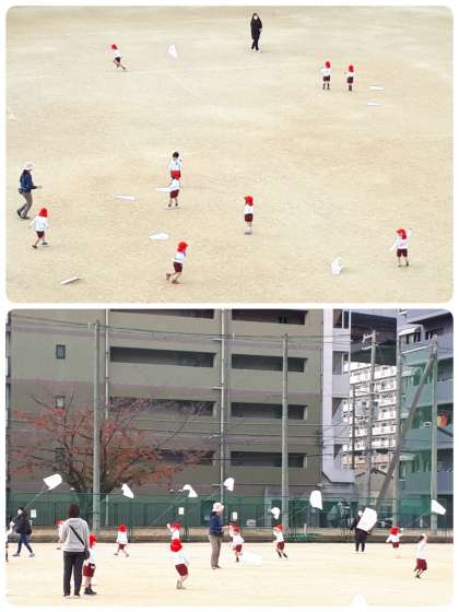 瓜破北幼稚園の園児さんが、たこあげにやってきました〜。